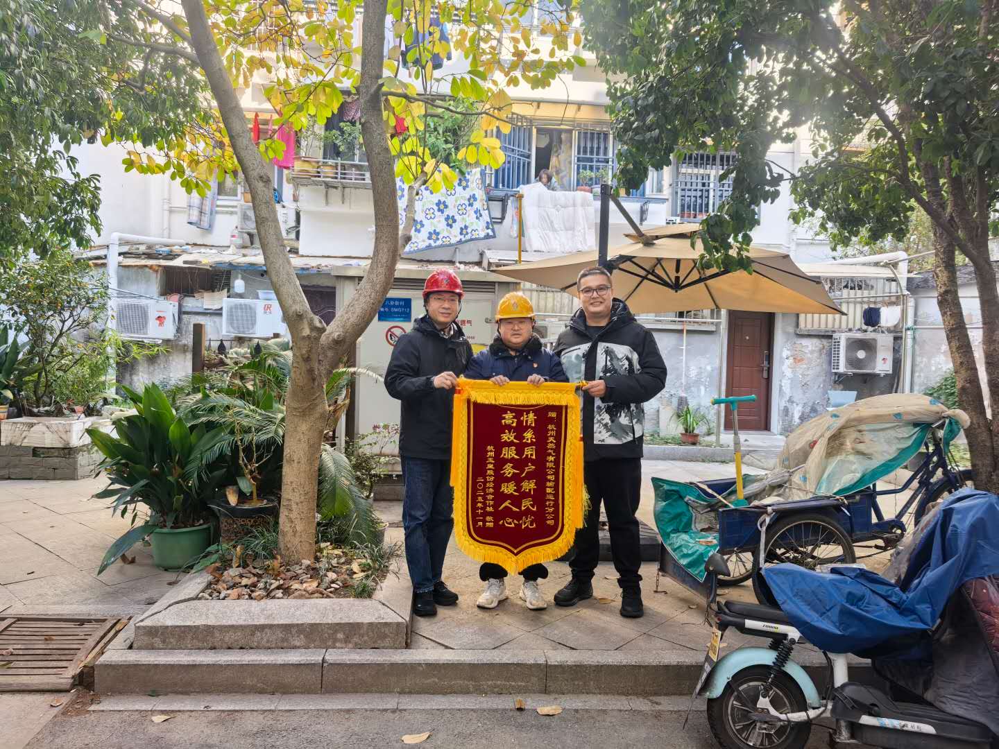 近日,杭州玉皇股份经济合作社代表将一面绣有“情系用户解民忧 高效服务暖人心”的锦旗送至输配运行分公司,以感谢分公司顺利完成八卦新村调压器技术改造项目,有效解决了当地燃气供应问题。