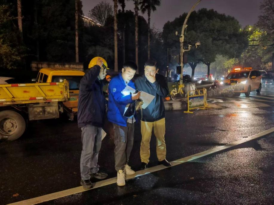 此次提压改造内容涵盖多个方面、任务繁重,共涉及开挖点31处,修复破损点6处,启闭阀门52个,启闭调压器18台。为最大程度降低施工对居民生活的影响,施工采用“分阶段、分区域”的夜间施工模式。在提压改造工程筹备阶段,多次组织专题讨论会,将“安全第一”原则贯穿始终,通过提前开展多轮现场实地勘查,精准掌握实际情况,进而不断优化施工方案、完善应急预案,为工程顺利推进提供有力保障。在工程组织实施阶段,分管领导钟奇作为现场总指挥,带领生产安全科、天目运行站、水湘运行站组建专项保障团队,涵盖割接施工组、调压操作组、管线巡查复核及应急抢修等岗位,安排专人精准负责开关阀门、抽插盲板等关键操作,运用5G应急指挥车,对现场实时高效指挥,进而实现对施工全流程的有效管控。针对施工覆盖区域及周边管网,采用PPB级巡检车开展全方位、无死角的泄漏排查工作,确保无安全隐患。面对地下管网错综复杂、有限空间作业环境复杂多变的严峻挑战,团队成员凭借对管网布局的精准研判与丰富的实战经验,在严守安全红线、确保安全生产“零事故、零伤害”的前提下,协同奋战、攻坚克难。从现场勘查、方案制定到施工操作、质量验收,各个环节紧密衔接、高效推进,以“输配速度”诠释了“燃气铁军”的使命担当。