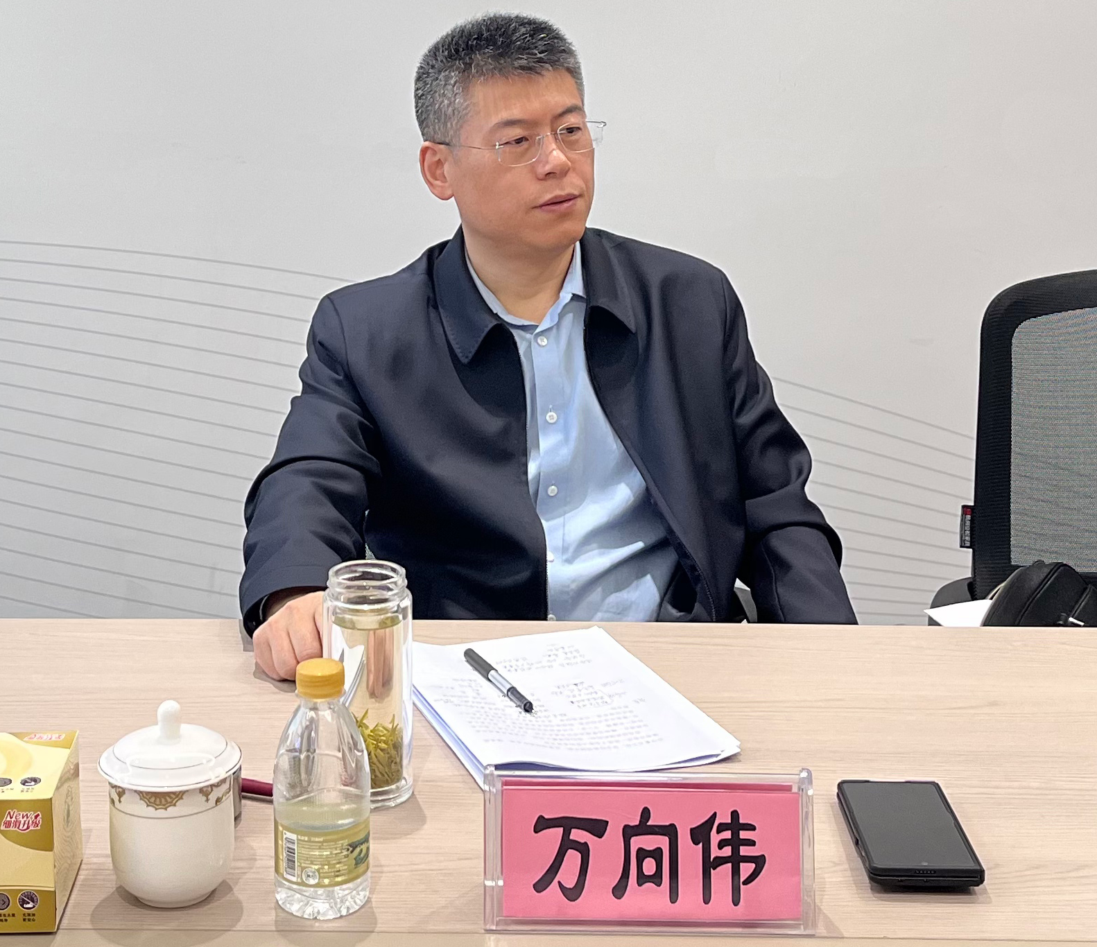 4月8日,集团党委书记、董事长万向伟赴杭天服务发展公司开展调研指导,分公司领导班子成员、各部门及综合服务站负责人参加。