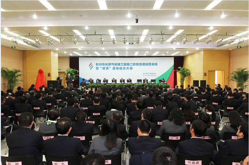 杭州市天然气利用工程二阶段合资项目涉及的所有审批均已完成,为确保合资公司顺利运营,保障今冬明春天然气正常供应,2013年11月30日上午8:30,杭州市天然气利用工程第二阶段合资正式运营启动暨“双百”活动动员大会顺利召开。合资各方股东代表、杭天董事会成员、杭燃集团两级中层以上干部、职工代表、党团员代表、杭燃主城区业务班组长以上员工、杭天公司中层以上干部、党团员代表、班组长以上员工近250人参加会议,市城投集团总经理章维明、副总经理陈云龙出席会议。 会议由杭燃集团总经理俞建国主持。