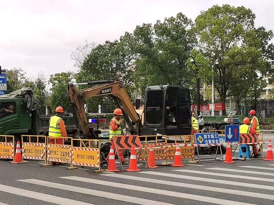东信大道(南环路一江南大道)的管道升级改造现场。杭州天然气有限公司供图