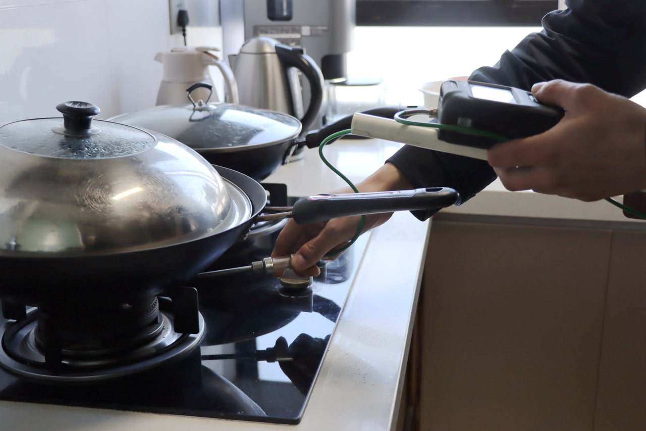 燃气客服员在用户家中进行安全检查。蒋子祎 摄