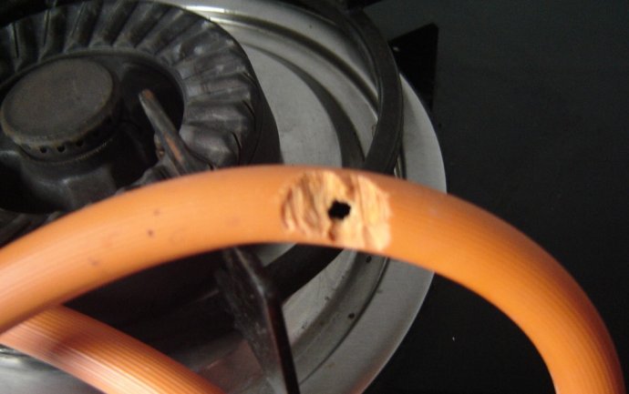据统计,每10起客户燃气事故,有7起是因胶管原因所致。总结起来,燃气胶管有四怕:一怕老鼠咬,胶管质地相对柔软,是老鼠磨牙的好对象;二怕常弯折,使用台式灶时,灶具移动可能会扯拉软管,导致脱落漏气,而使用嵌入灶时,灶具下部空间狭小,软管需弯折后放入,长时间使用会导致弯折处开裂漏气;三怕开水烫,软管长期使用,时间长了会变得脆弱,当开水不慎浇上时会使软管成开裂状态;四怕总不换,专用燃气橡胶软管的使用寿命仅为18个月,软管超期后可能会老化漏气。
